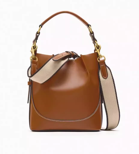 ๐ MUSEUM | Artistic Charm: Fashionable Versatile Casual Commuter Wide-Strap Brown Drawstring Handheld Crossbody Bucket Bag