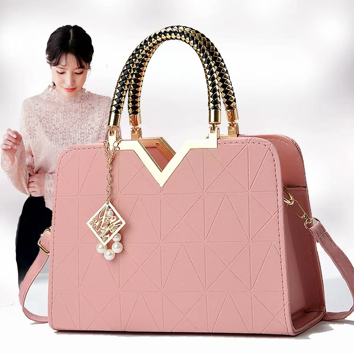 This season’s designs are inspired by the origami structure of modern architecture. The designer attempts to deconstruct the sensual cherry blossom pink hue through rational triangular geometric embossing. The bold V-shaped metal cutout design at the center of the bag is not only a visual anchor point, but also a symbol of the sharp and determined heart beneath the gentle exterior of modern women.