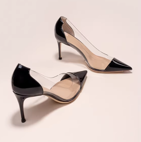 👜 MUSEUM | Genuine Leather High-Heeled Women’s Shoes With Thin Heels, Pointed Toes, Transparent French-Style Elegant Single Shoes, New Summer Black