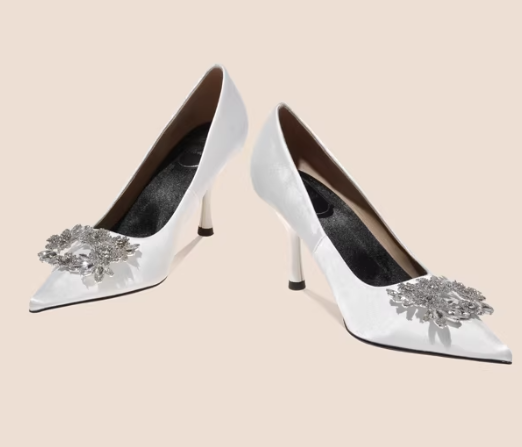 π MUSEUM | New High-Heeled Shoes With Thin Heels, Pointed Toes, Rhinestones, French-Style Elegant Women’s Flats, White Wedding Shoes