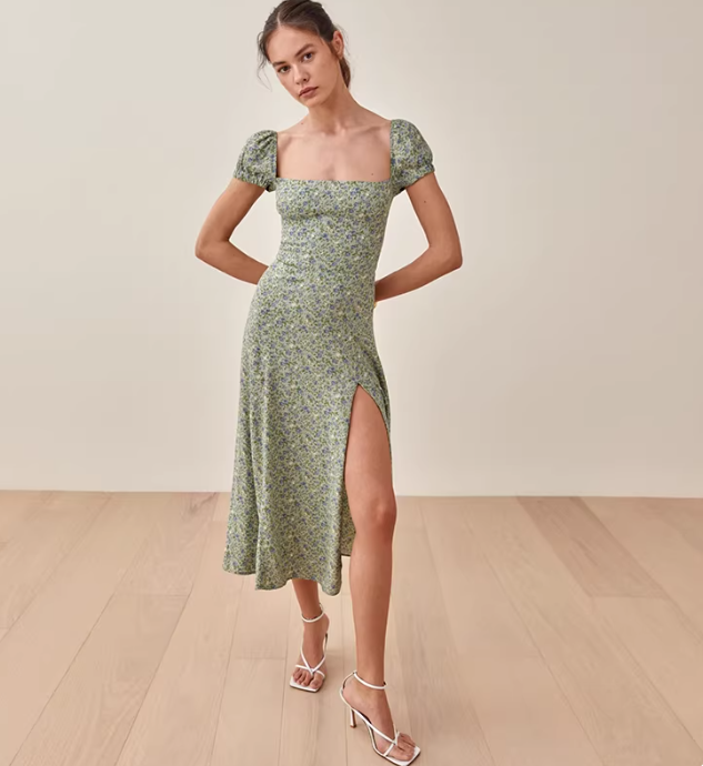 👜 MUSEUM | Off-Shoulder Short Sleeve Dress, French Retro Style, Chiffon, High Waist, Slit Long Dress, Summer Women